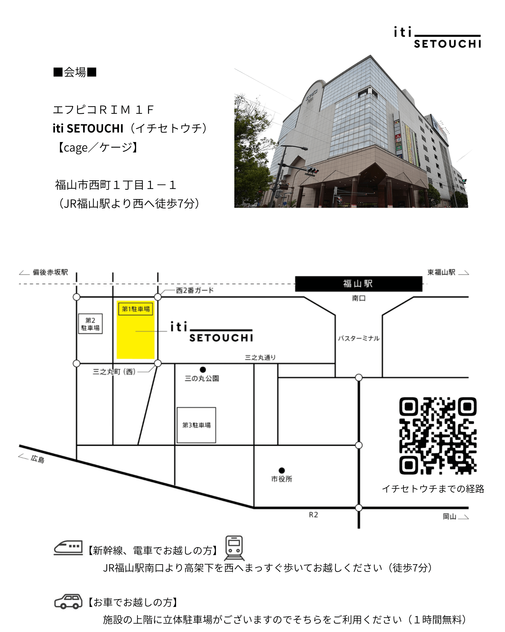 JR福山駅南口より高架下を西へまっすぐ歩いてお越しください(徒歩7分)